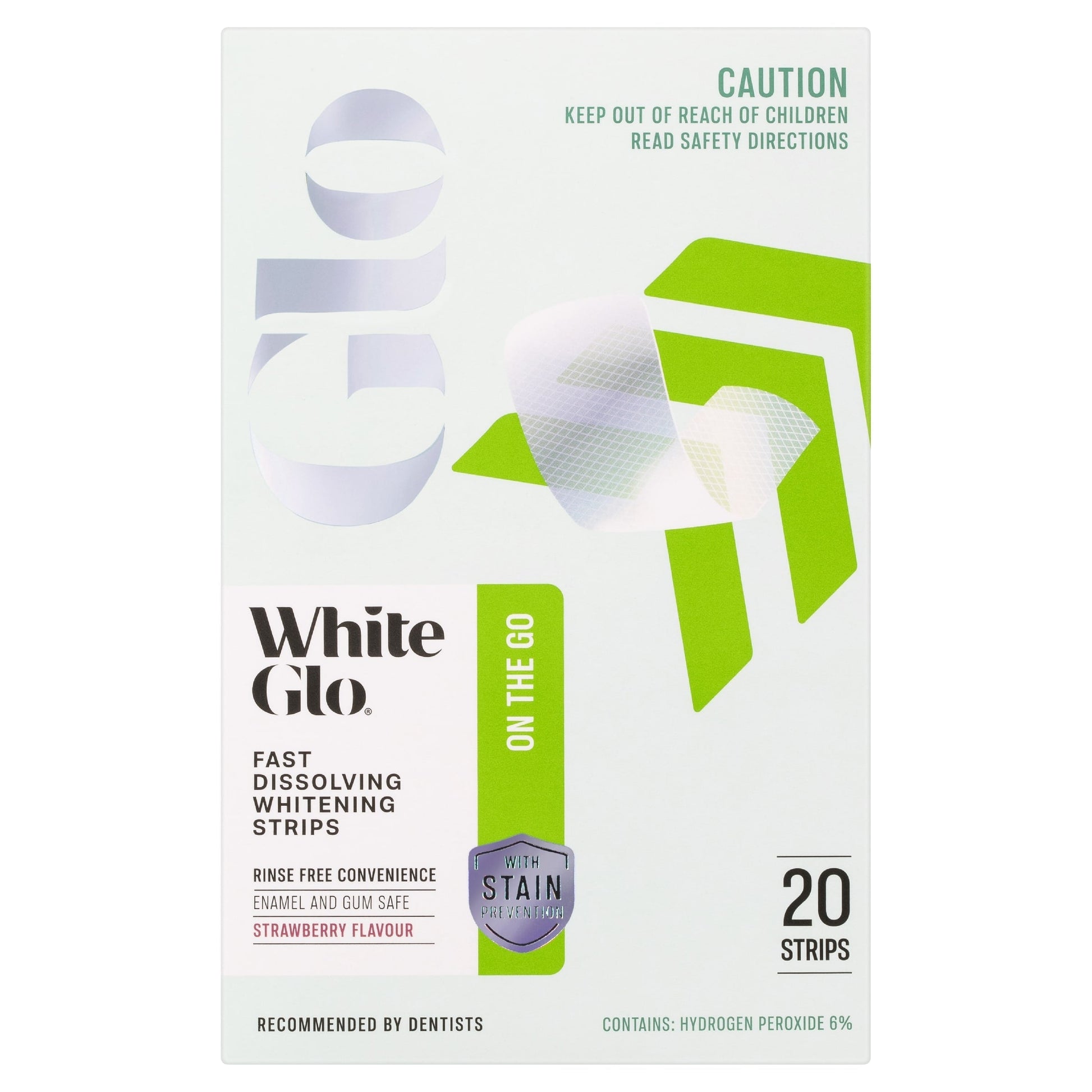 Whiten your teeth on the go with White Glo's fast Dissolving Whitening Strips.